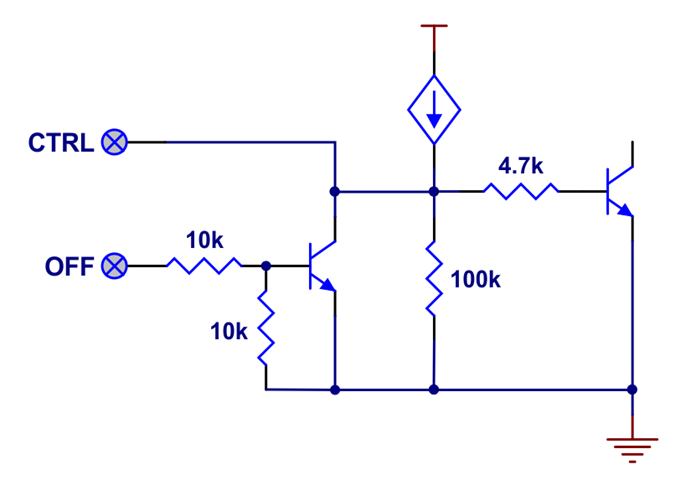 OFF and CTRL input structures of Pushbutton Power Switch with Reverse Voltage Protection.