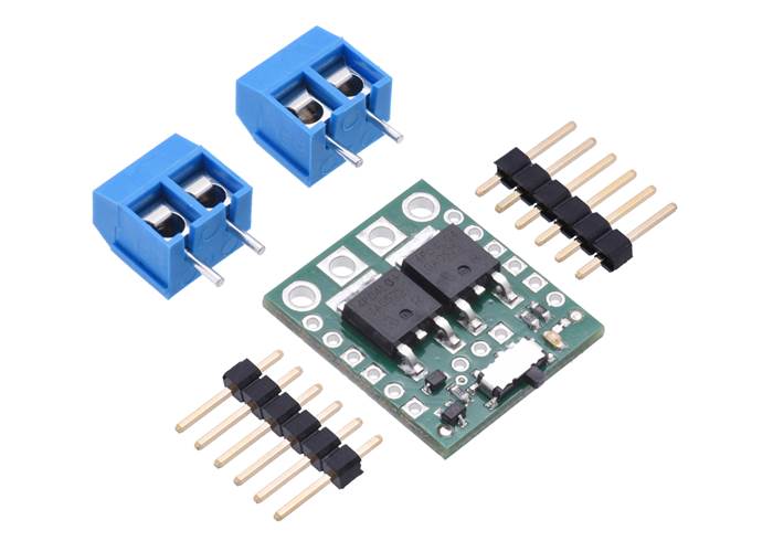This breadboard-compatible module is an alternative to bulky power switches. It uses a small integrated slide switch to control a high-side power MOSFET that can deliver continuous currents up to around 8 A at 4.5 V to 40 V. The board features reverse-voltage protection and also makes it easy to control the MOSFET with an external switch or the digital output of a microcontroller.