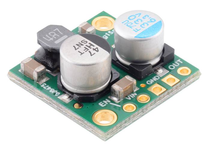 Pololu 2.5 A Step-Down Voltage Regulator D24V25F5 (5 V) or D24V25F3 (3.3 V) with included hardware.