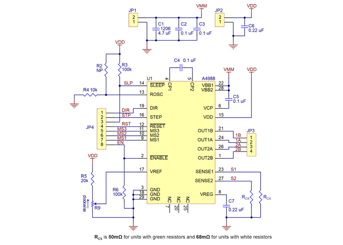 This is a bulk-packaged version of our Black Edition A4988 Stepper Motor Driver Carrier that ships without header pins . Please see that product’s page for more information about the driver.