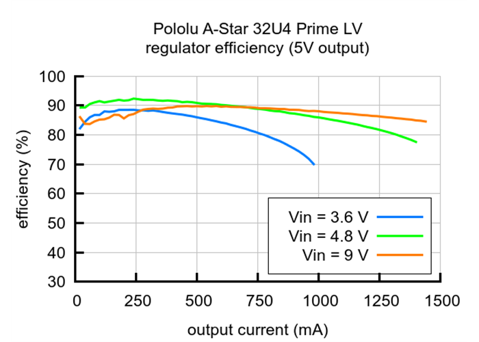 Typical efficiency of the 5 V regulator on the A-Star 32U4 Prime LV (original ac03b version).