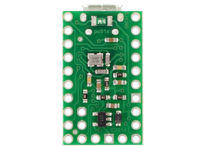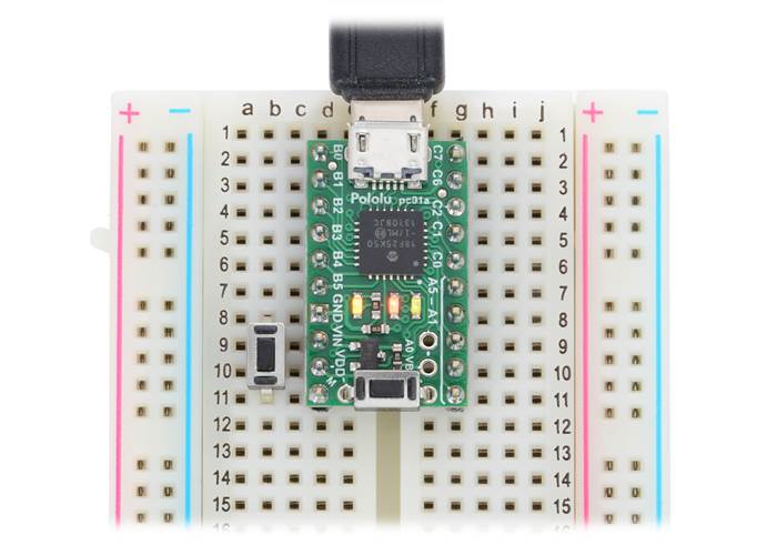 Two 1×10-pin breakaway 0.1″ male headers and one 1×6-pin breakaway 0.1″ male header are included with the P-Star 25K50 Micro. These header pins can be soldered in to use the board with perfboards, breadboards, or 0.1″ female connectors.