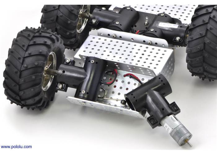 Pololu 60×8mm wheel with 4mm hub adaptor on Pololu 25D mm metal gearmotor with encoder.