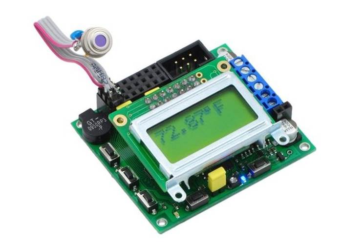 The MLX90614 provides two methods of output: PWM and SMBus (i.e. TWI, I2C). The 10-bit PWM output provides a resolution of 0.14°C, while the TWI interface has a resolution of 0.02°C. The MLX90614 is factory calibrated in wide temperature ranges: -40 to 85°C for the ambient temperature and -70 to 382.2°C for the object temperature. The measured value is the average temperature of all objects in the Field Of View of the sensor. The MLX90614 offers a standard accuracy of 0.5°C around room temperatures.