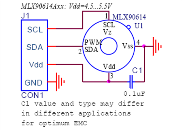 Melexis' MLX90614ESF-BAA is an infrared thermometer designed for non-contact temperature sensing. An internal 17-bit ADC and a powerful DSP contribute to the MLX90614's high accuracy and resolution.
