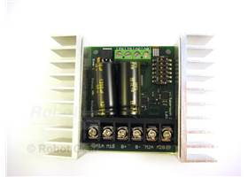 Sabertooth 2X25 dual regenerative motor driver from Dimension Engineering drives two robot DC motors with a continuous current of 25A and peak of 50A. Features thermal protection and soft current limiting making it very hard to kill. This versatile driver communicates via serial, packetized serial, radio control PWM signals and analog voltage.