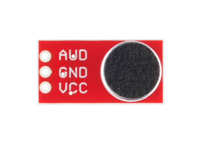This small breakout board couples an Electret microphone (100Hz--10kHz) with a 60x mic preamplifier to amplify the sounds of voice, claps, door knocks or any sounds loud enough to be picked up by a microcontroller’s analogue-to-digital converter. Each breakout comes fully assembled and works from 2.7V up to 5.5V.