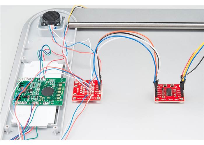 This board's versatility allows you to mount four individual sensors for a custom base, or simply gut an off-the-shelf bathroom scale to hack this combinator inside. As you may have noticed, it's packed with footprints to make your load sensing project customisable and scalable: