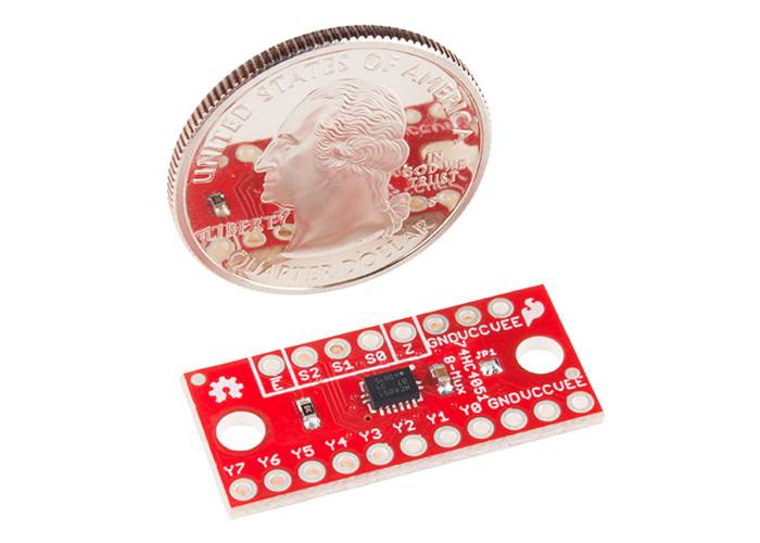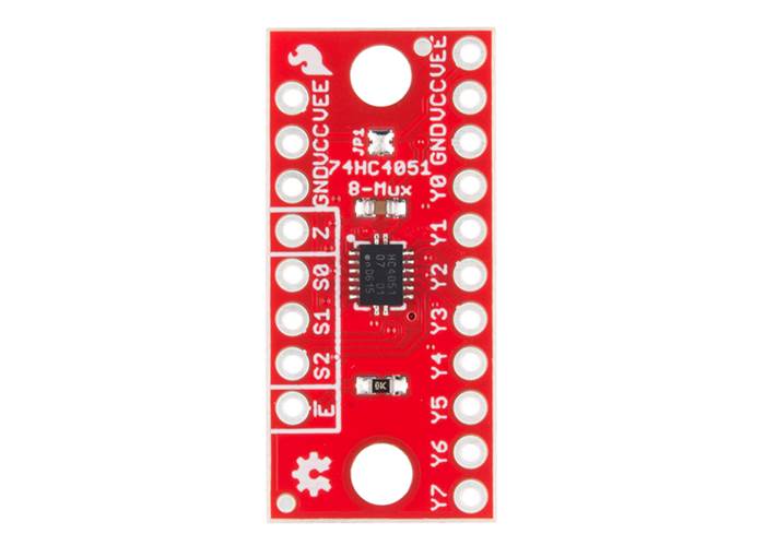 The SparkFun Multiplexer Breakout provides access to all pins and features of the 74HC4051 an 8-channel analogue multiplexer/demultiplexer.