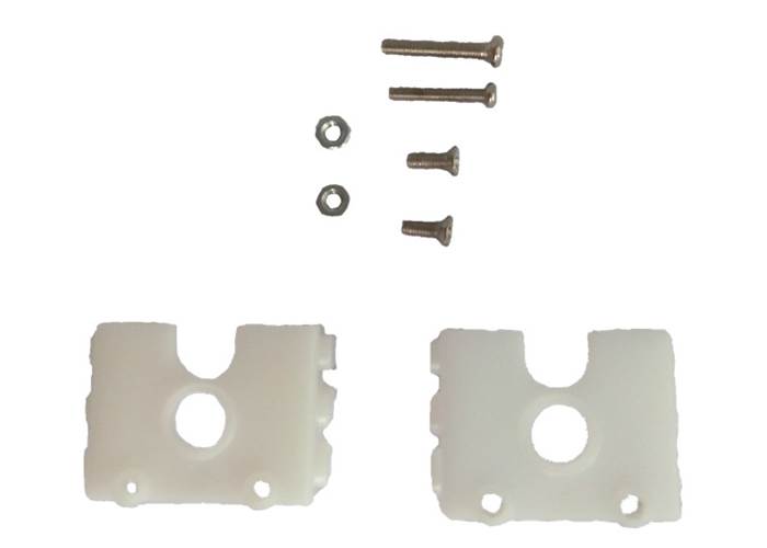 Our plastic gear motors have convenient holes for mounting but these plastic brackets make for easier mounting in many situations. Sold as a pair of brackets with mounting screws included.