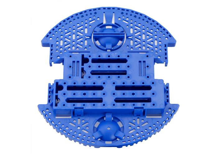 This is the main base plate for the Romi chassis, including the battery cover, in white . It is included as part of the white Romi Chassis Kit .