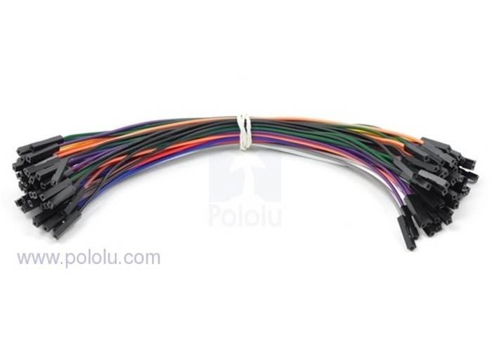 These premium jumper wires are stranded 26 AWG wires with female connectors on both ends, for use with 0.1″ (2.54 mm) male headers and connectors. The assortment of 12″ (30 cm) wires includes five each of ten different colors.
