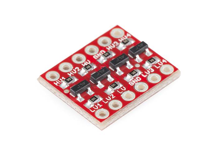The SparkFun bi-directional logic level converter is a small device that safely steps down 5V signals to 3.3V AND steps up 3.3V to 5V at the same time.