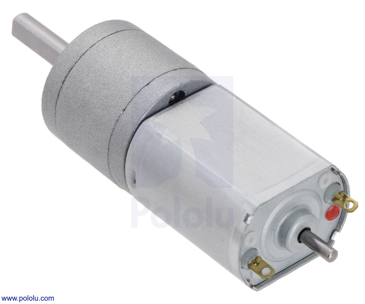 These small brushed DC gearmotors can deliver a lot of power for their size. This version has a 6V brushed DC motor combined with a 312.5:1 metal spur gearbox. The gearmotor is cylindrical with a diameter of 20 mm, and the D-shaped output shaft is 4 mm in diameter and extends 18 mm from the face plate of the gearbox.