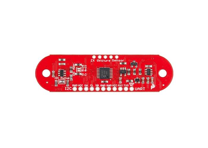 The ZX Distance and Gesture Sensor is a touchless sensor that is capable of looking for simple gestures. Developed in conjunction with XYZ Interactive, the sensor uses their GestureSense® technology to recognise the distance of an object away from the sensor up to about 12 inches (30cm, referred to as the “Z” axis) and the location of the object from side to side across the sensor in about a 6-inch (15cm) span, referred to as the “X” axis. You will be able to use I2C or UART to communicate with the ZX Sensor via a microcontroller or computer.