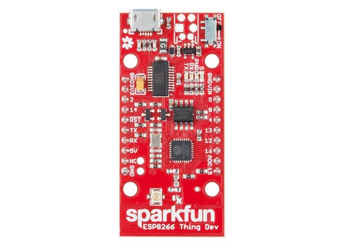 This is the SparkFun ESP8266 Thing Dev Board --- a development board that has been solely designed around the ESP8266, with an integrated FTDI USB-to-Serial chip. The ESP8266 is a cost-effective and very capable WiFi-enabled microcontroller. Like any microcontroller, it can be programmed to blink LEDs, trigger relays, monitor sensors or automate coffee makers. With an integrated WiFi controller, the ESP8266 is a one-stop shop for almost any internet-connected project. To top it all off, the ESP8266 is incredibly easy to use; firmware can be developed in Arduino and uploaded over a simple serial interface. The ESP8266 Thing Development Board breaks out all of the module’s pins with pre-soldered headers, and the USB-to-serial converter means you don’t need any peripheral components to program the chip. Just plug in a USB cable, download the Arduino board definitions, and start IoT-ing.