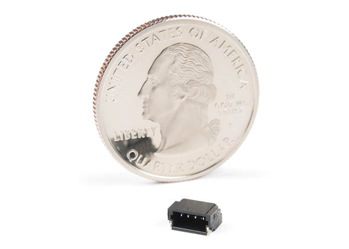 Here is a tiny 4-pin Qwiic 1mm JST connector. This connector is used on all our Qwiic based boards and can be used to create your own I2C based device compatible with the Qwiic system.