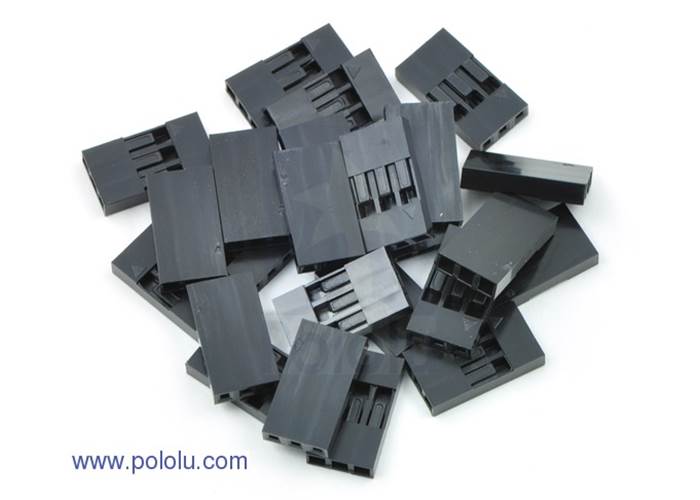 These three-pin housings work with our crimp pins to let you quickly make custom cables that mate with various 0.1"-spaced connectors, including male or female headers and solderless breadboards. They are sold in packs of 25.