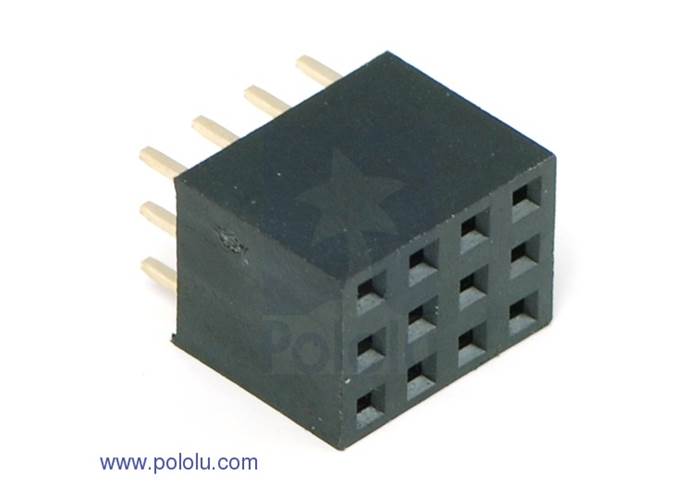This connector is a triple-row, 12-pin (3×4), straight female header strip designed to match 0.1" male headers.