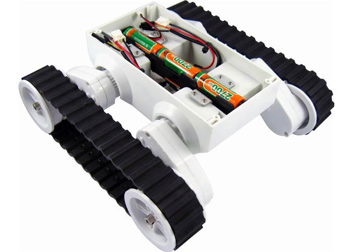 The strongly made Rover 5 tracked chassis from Dagu Electronics is an excellent base for tank style robots. A unique design allows the tread height to be adjusted for extra clearance. Independant motors for each wheel include quadrature encoders for precise control. This version has 4 motors with encoders - one motor per wheel.