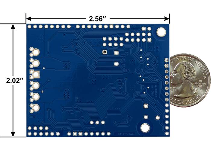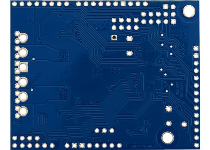 This version, the 24v14 motor driver shield, can be distinguished from the other versions by its blue PCB and the number 100 on top of the tall silver electrolytic capacitors.