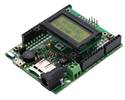 • Can be used with an Arduino or compatible board (through shield headers) or other microcontroller boards (through 0.1″ header along the left side)
