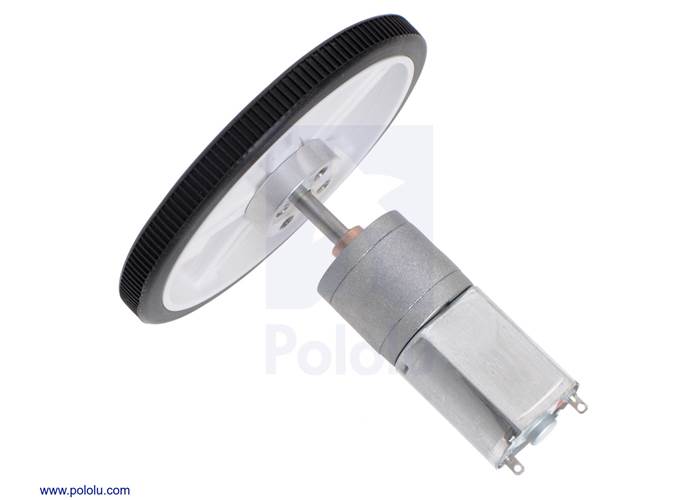 80×10mm Pololu Multi-Hub Wheel installed on the 4mm D-shaft of a 20D mm metal gearmotor.
