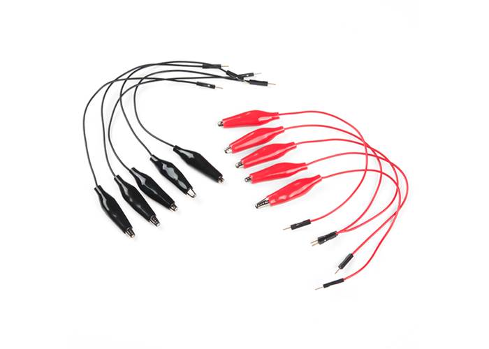This is a 10-pack of wires that are pre-terminated with an alligator clip on one end and a hookup pigtail on the other. Alligator clips are a staple item for any workbench or makerspace, and with these cables you will be able to easily incorporate those clips into a breadboard, development platform or anything else to which you would normally be able to attach a hookup wire.
