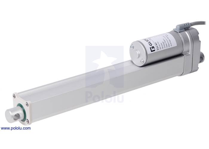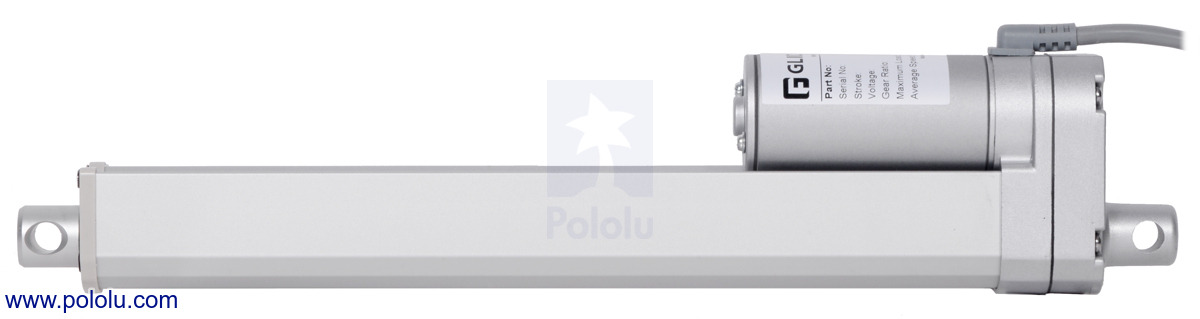 To test-drive the actuator, simply connect a power source of up to 12 V to the motor leads. Reversing the applied voltage will reverse the direction of motion. A motor controller or motor driver is required for electronic speed and direction control. We recommend our Jrk G2 24v13 Motor Controllers for use with the feedback actuators (see below for more information on this) and the Simple Motor Controller G2 18v15 for controlling the actuators without feedback, though many of our other motor controllers and motor drivers are capable of powering this actuator.