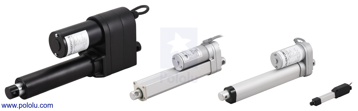 To test-drive the actuator, connect a power source of up to 12 V to the motor leads while ensuring that the output shaft is not allowed to rotate relative to the actuator body as it extends or retracts. Reversing the applied voltage will reverse the direction of motion. A motor controller or motor driver is required for electronic speed and direction control. We recommend our Jrk G2 24v21 Motor Controllers for use with the feedback actuators (see below for more information on this) and the Simple Motor Controller G2 24v19 for controlling the actuators without feedback, though many of our other motor controllers and motor drivers are capable of powering this actuator.
