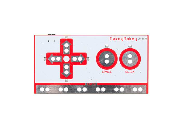 The Makey Makey Classic uses high-resistance switching to detect when you’ve made a connection even through materials that aren’t very conductive (like leaves, pasta or people). This technique attracts noise on the input, so a moving window averager is used to lowpass the noise. The Makey Makey can also act like a keyboard or mouse. There are six inputs on the front of the board, which can be attached to via alligator clipping, soldering to the pads, or any other method you can think of. There are another 12 inputs on the back, six for keyboard keys and six for mouse motion, which you can access with jumpers via the female headers.