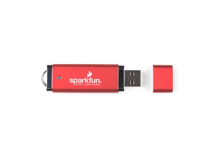 With the cost of microSD cards on a consistent rise, it’s always useful to have an economical and reliable option as a backup for storing your files. This sleek, red 16GB thumb drive has been emblazoned with our SparkFun Electronics logo and our moniker to Start Something!
