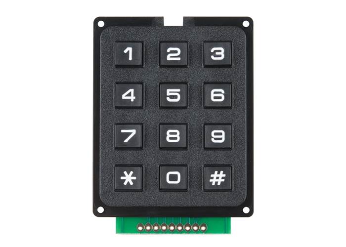 This is a basic 12 button keypad that has been designed for easy user input and functionality. The buttons are set up in a matrix format. This allows a microcontroller to 'scan' the 7 output pins to see which of the 12 buttons is being pressed.