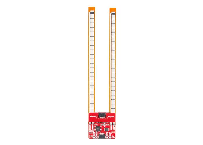Flex sensors are great for telling how bent something is in a project, but we’ve been running into issues with durability when using them in wearable applications like gloves. The SparkFun Qwiic Flex Glove Controller isolates the weak point on each flex sensor to allow for more permanent applications. Essentially, this board allows you to incorporate flex sensors into a glove to control lighting, sound, and other effects making it perfect for wearable and e-textile applications! To make it even easier to use this controller, all communication is enacted exclusively via I2C, utilising our handy Qwiic system. However, we still have broken out 0.1" spaced pins in case you prefer to use a breadboard.