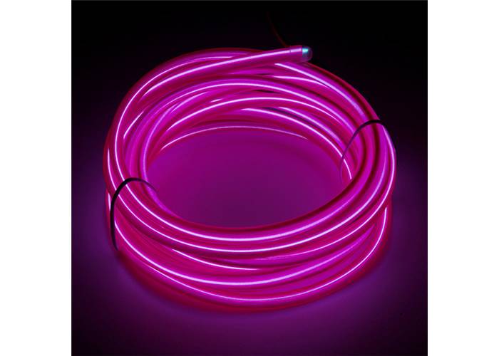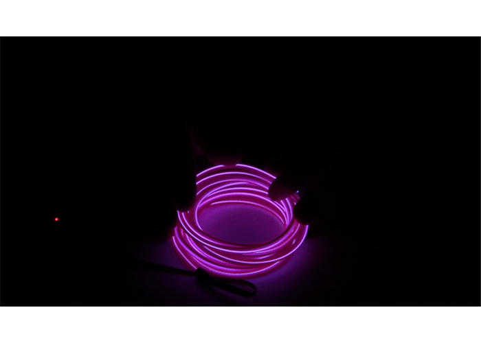 This particular wire glows with a pink hue and is 3m (almost 10 feet) in length, approximately 5mm in diameter and is terminated with a simple JST-PH connector. This connector works directly with our SparkFun Original EL driver boards, the EL Escudo and the EL Sequencer.
