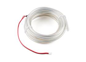 This particular wire glows with a white hue and is 3m (almost 10 feet) in length, approximately 5mm in diameter and is terminated with a simple JST-PH connector. This connector works directly with our SparkFun Original EL driver boards, the EL Escudo and the EL Sequencer.