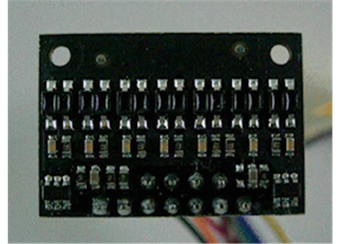 These reflectance sensor arrays maintain a constant current through their IR emitters, keeping the emitters’ brightness constant, independent of the supply voltage (2.9 V to 5.5 V). The emitters can be controlled with the board’s CTRL pins, and the details of the control depends on the array size and density: