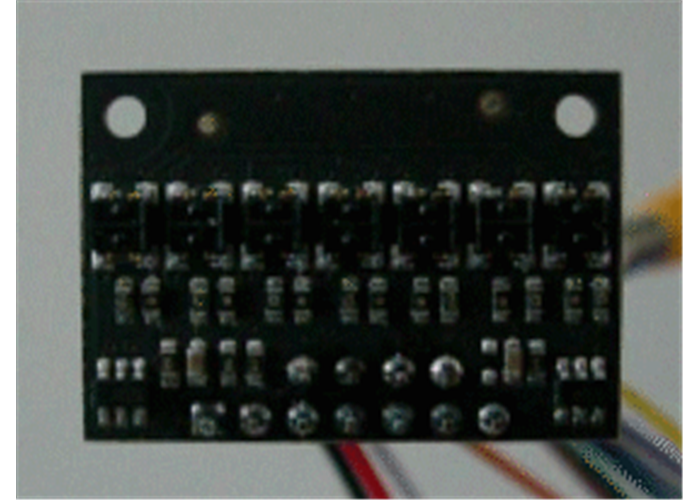pitch × sensors size (mm) output max current optimal range LED board 4 mm × 7 29.0 × 20.0 analogue 3.5 mA 17 mA 10 mm This array of IR LED/phototransistor pairs is great for precisely identifying changes in reflectance (like line detection).