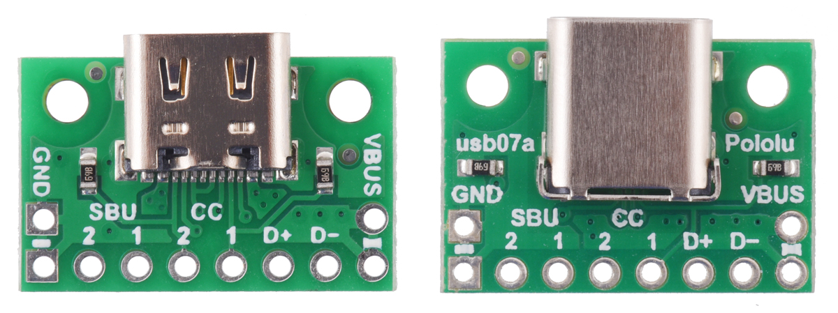 We have an alternative USB 2.0 Type-C Connector Breakout Board (usb07b) that uses a different style of connector and is slightly smaller, but is otherwise functionally identical to this board (usb07a).