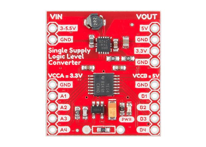 The SparkFun Single Supply Logic Level Converter is logic level and power supply translator in one small package.