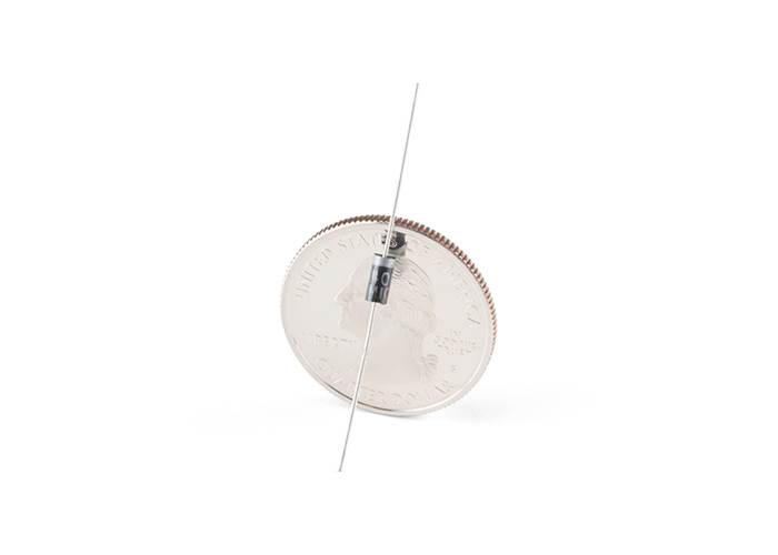 This is a simple, subminiature size, axial lead mounted rectifier diode. Often used for reverse voltage protection, the 1N4004 is a staple for many power, DC to DC step up, and breadboard projects. The 1N4004 is rated for up to 1A/400V.