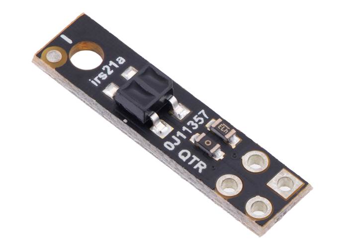 This IR LED/phototransistor pair is great for precisely identifying changes in reflectance (like line detection). It operates from 2.9 V to 5.5 V and offers dimmable brightness control independent of the supply voltage. In general, the closer the object, the higher the contrast between light and dark readings, but high-reflectance objects are generally detectable out to around 30 mm. This version features a traditional-style QTR sensor without lenses.