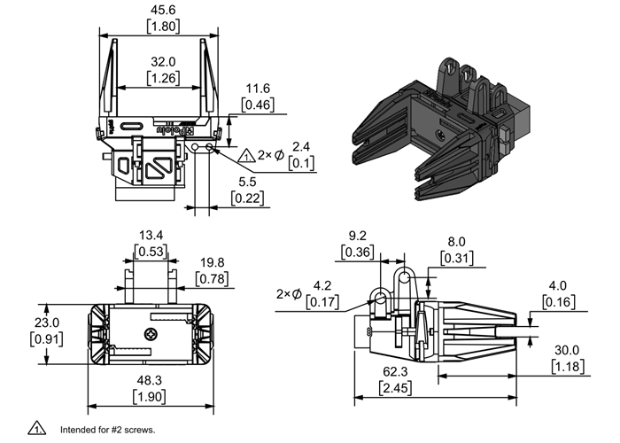 This small gripper uses a rack and pinion design with a servo-driven pinion and opposing racks to keep the gripper paddles synchronised and parallel to each other throughout its 32 mm range of motion. It includes a special micro servo with an additional wire that gives access to its feedback potentiometer, so you can track the actual position of the gripper paddles. This is the same gripper used in the Robot Arm Kit for Romi, and assembly instructions can be found in the Robot Arm Kit for Romi User’s Guide. Please note that the full range of the Micro Gripper requires servo control pulses between 0.5 ms (fully open) and 2.4 ms (fully closed), which is well beyond the standard hobby servo range 1 ms to 2 ms, so you should make sure your control electronics is capable of generating such signals if you care about getting the full range. Due to unit-to-unit variations in the servos, you might need to adjust these values for your particular gripper.