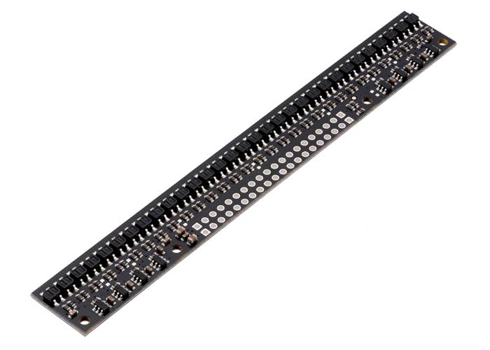 These reflectance sensors feature a linear array of infrared emitter/phototransistor pair modules in a high-density (4 mm pitch) or medium-density (8 mm pitch) arrangement, which makes them well suited for applications that require detection of changes in reflectivity. This change in reflectivity can be due to a colour change at a fixed distance, such as when sensing a black line on a white background, as well as due to a change in the distance to or presence of an object in front of the sensor. A variety of sensor counts and densities is available so you can pick the ideal arrangement for your application. Since the outputs are all independent, you can connect just some of the channels to attain an irregular or non-standard sensor spacing.