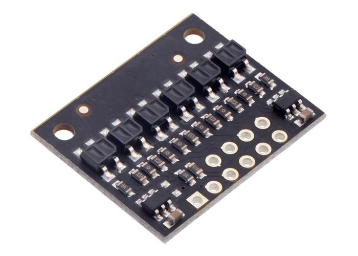 These reflectance sensors feature a linear array of infrared emitter/phototransistor pair modules in a high-density (4 mm pitch) or medium-density (8 mm pitch) arrangement, which makes them well suited for applications that require detection of changes in reflectivity. This change in reflectivity can be due to a colour change at a fixed distance, such as when sensing a black line on a white background, as well as due to a change in the distance to or presence of an object in front of the sensor. A variety of sensor counts and densities is available so you can pick the ideal arrangement for your application. Since the outputs are all independent, you can connect just some of the channels to attain an irregular or non-standard sensor spacing.
