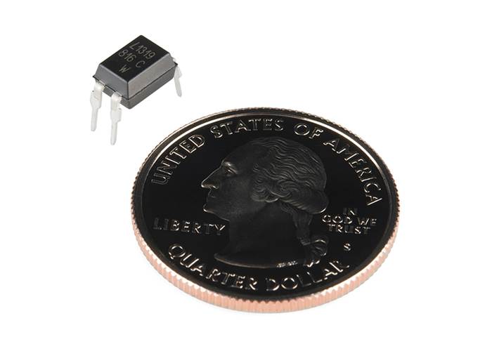 This is an opto-isolator for controlling large loads of current on a single channel. This 4-pin dip can be used in conjunction with relays, small motors, etc. to allow a simple microcontroller to turn on and off up to 50mA.