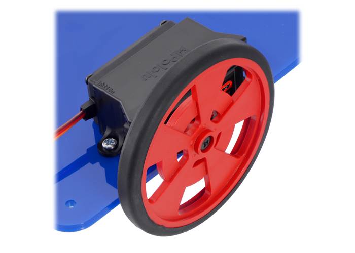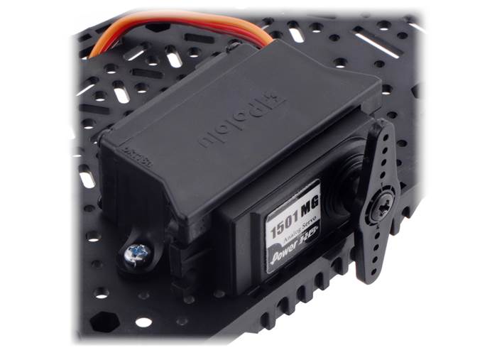 This plastic bracket provides a convenient way to mount standard-size servos with a side flat to a surface.
