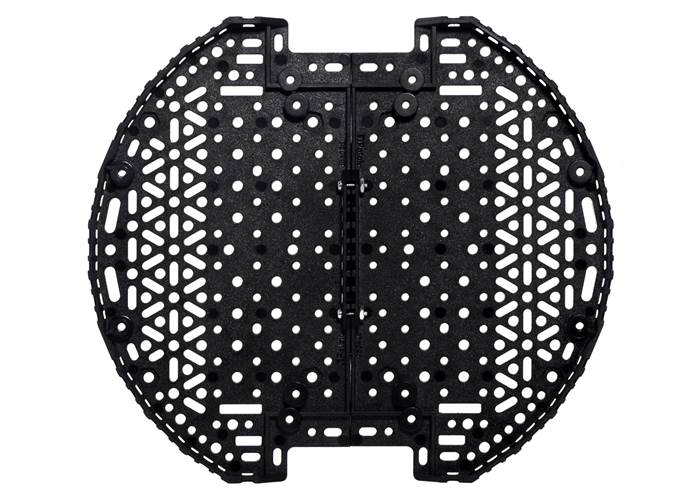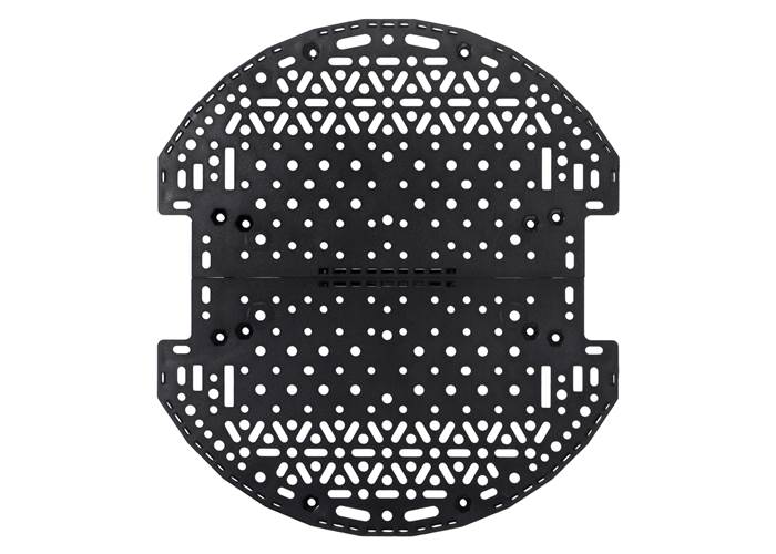 This expansion plate makes it easy to add more levels to your Romi robot, providing plenty of extra room to mount additional components and sensors to your Romi chassis. The abundance of mounting holes and slots that cover the plate match the pattern used on the Romi chassis base plate and are intended for various sizes of screws (not included) such as #2-56, #4-40, M2, and M3. The plate also features several slots for passing wires through to make your electrical connections. This is the same plate that is included as part of the Romi robot arm kit.