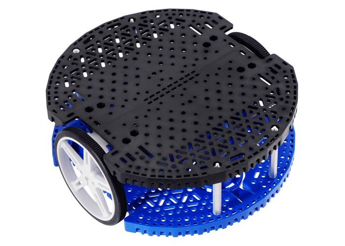 This Romi Chassis accessory offers a convenient way to expand your Romi robot vertically by adding new tiers. The expansion plate has the same diameter as the base plate, but we made it only a half circle to give you more expansion options.