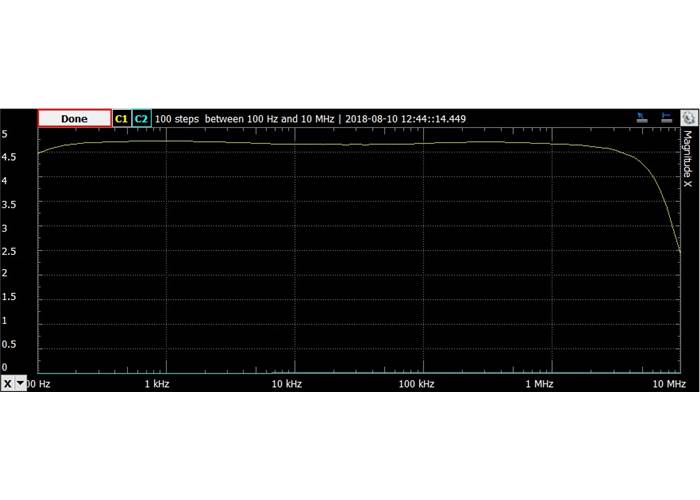 Electrically speaking, both stages on this board are identical. The default configuration is inverting with a gain of -4.7 with a bandwidth of almost 10MHz. Input signals are AC coupled, possess an input impedance of 10K with a low frequency cutoff of 15.9Hz. Outputs are also DC coupled, so don’t forget to add a capacitor to the output if you’re running a single-ended supply and need to strip out the DC component. The board will also operate with a single-ended DC power supply of 4.5V to 12V, or a bipolar supply from +/-2.25V to +/-6V.